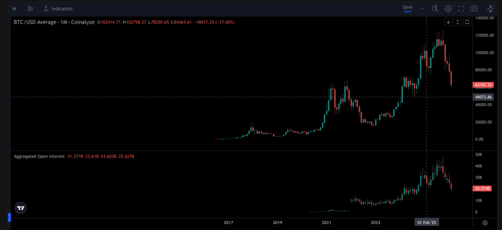 Leverage amplifies both upside and downside moves causing more volatility. During bull markets, rising prices encourage participants to increase exposure. Open interest grows and funding rates rise. Price appreciation fuels additional leverage, which in turn pushes prices higher.