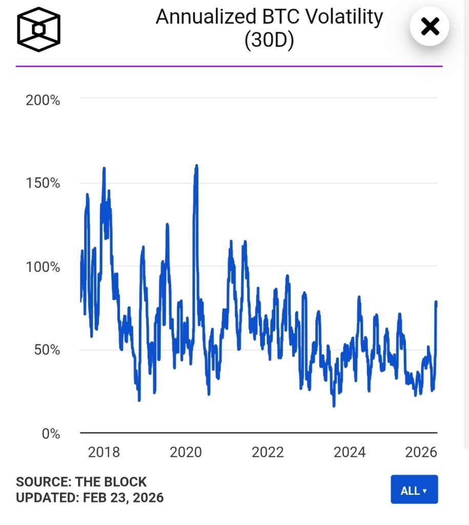 However, leverage does not disappear quietly. When positioning becomes excessive, even a moderate price reversal can trigger forced liquidations. These liquidations accelerate price movements and create volatility spikes. The same mechanism that accelerates the upside also amplifies the downside.